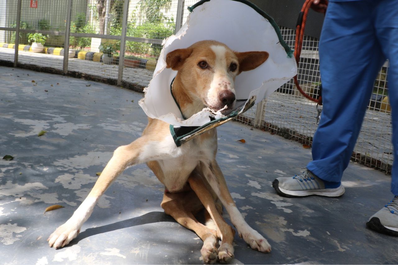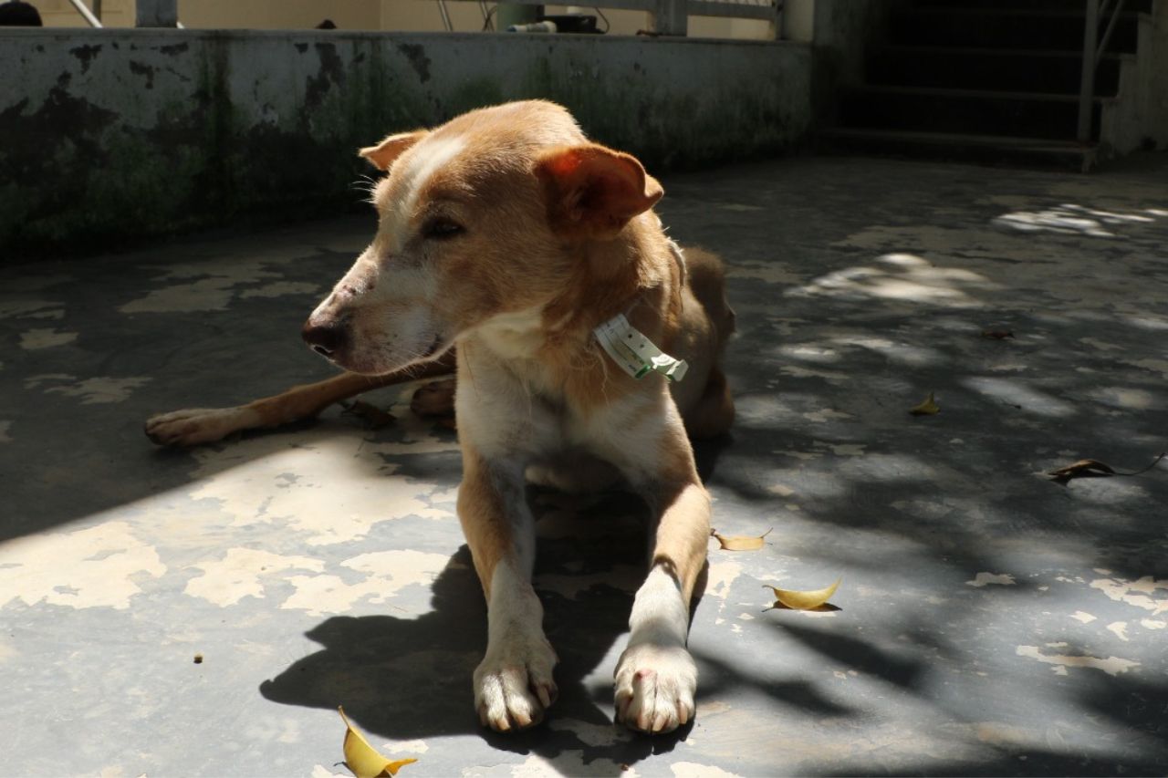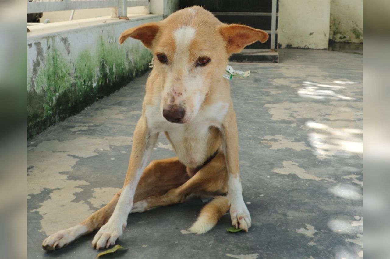 Neo, a 10-year-old community dog, was brought to us when he suddenly lost the ability to use his hind legs. He was in visible pain and couldn’t stand or walk properly.